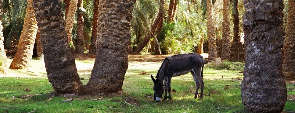 the hotel. Here you will meet local Oasians riding donkeys to their gardens.